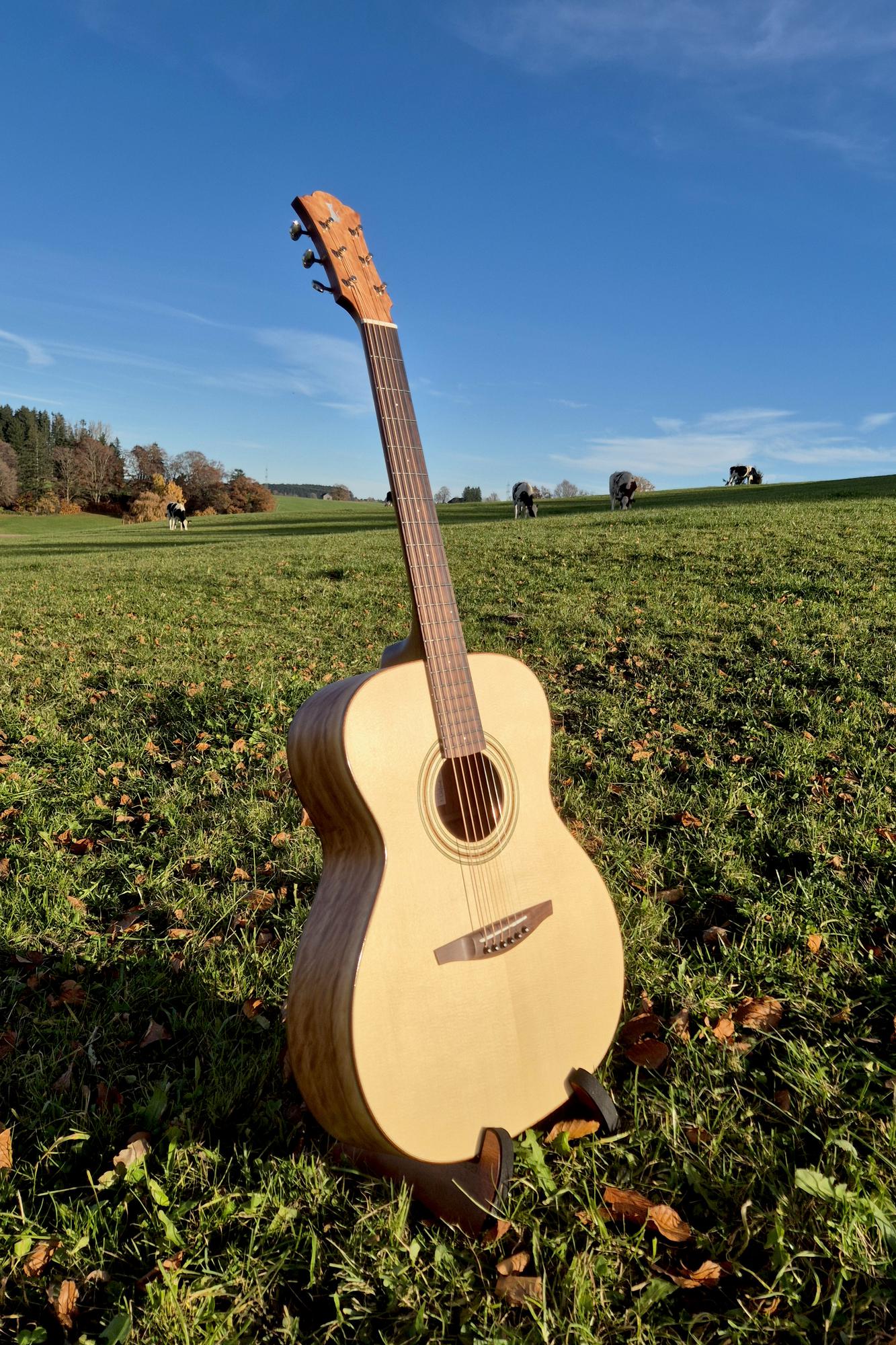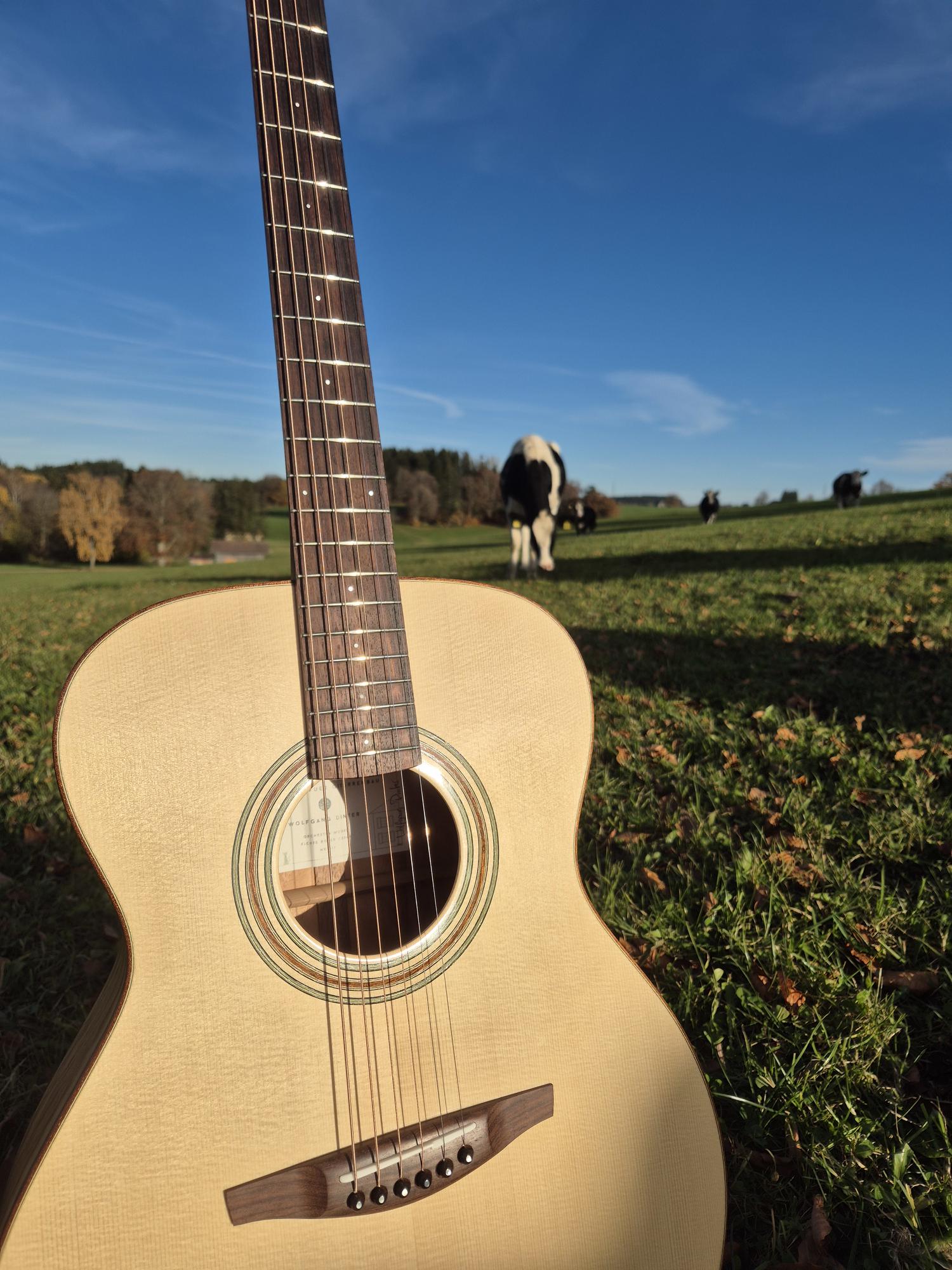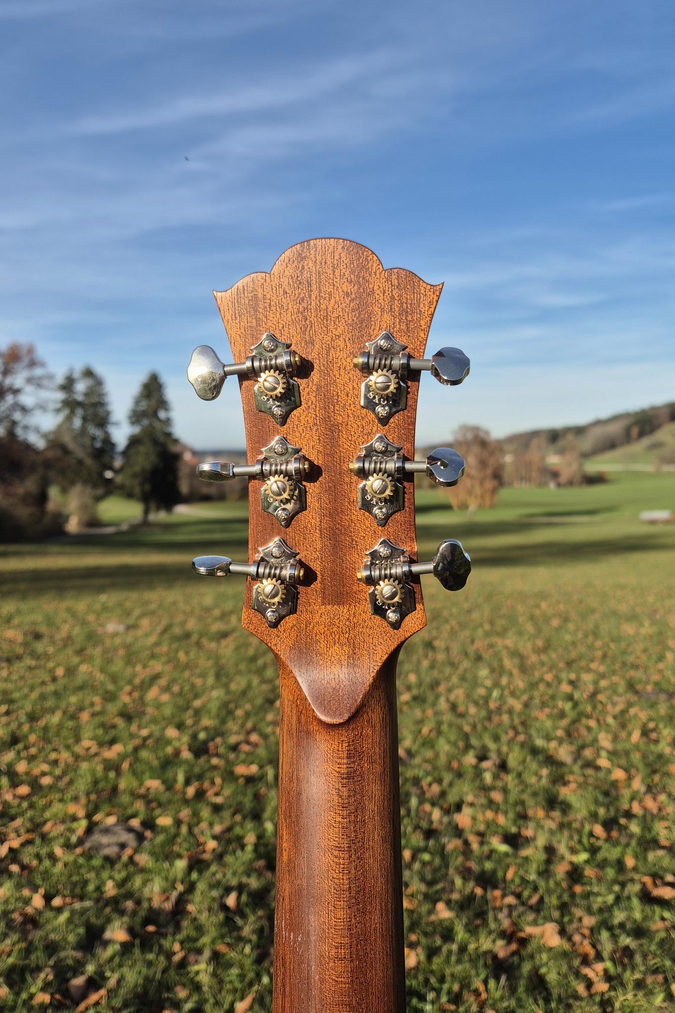 "Das Orchestra Model ist eine etwas kleinere Gitarre, die sich durch eine angenehme Bespielbarkeit auszeichnet. Durch eine ausgeprägte Deckenwölbung, die in Kombination mit einer leichten Bauweise steht, lässt sich ein dynamischer Ton mit einer beachtlichen Lautstärke erzeugen.
