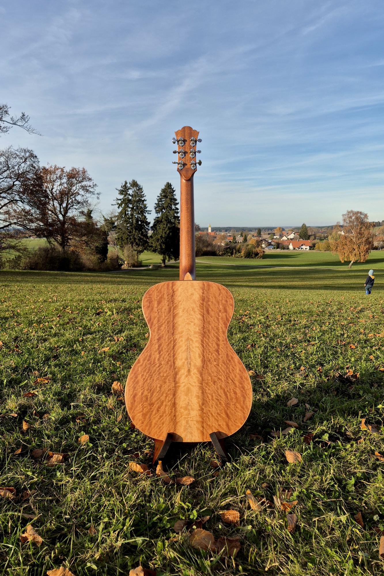 Mit Hilfe von Kohlefaserstäben im Inneren des Halses kann eine hervorragende Stimmstabilität ermöglicht werden. Die geölte Oberfläche von Hals und Korpus betont die natürliche Haptik und Farbe der Hölzer. Das Orchestra Model ist in einem optisch schlichten Gewand gekleidet, mit aller klanglichen Vielfalt eines handgefertigten Instruments."